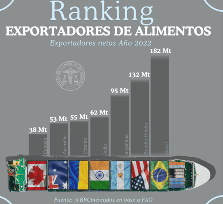 阿根廷华人正在线日讯按照结合国粮农组织(FAO)最新数据显示,阿根廷正在2022年成功巩固其做为全球第三大食物净出口国的地位,仅次于巴西和美国。这一主要成绩激发了国际市场的普遍关心。