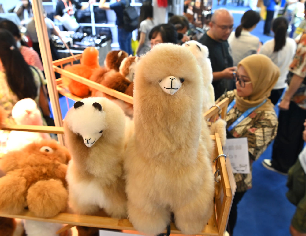 2024年9月28日,不雅众正在中国东盟博览会上挑选秘鲁羊驼毛公仔。(记者 周华 摄)■对欧盟、美国等保守市场也连结增势。欧盟是我国消费品第一猛进口来历地,也是我国机电产物第一大出口市场。两边经贸联系亲近,不竭拉紧了中欧好处配合体的纽带,2024年双边商业增加1。6%,此中对法国、西班牙、匈牙利别离增加2%、4。5%、12。9%。同期,中美商业增加4。9%,取我国商业全体增速根基持平,我们从美国进口农产物、能源产物、药品、飞机,对美国出口服拆、消费电子、家用电器等。