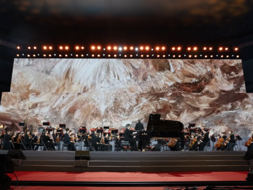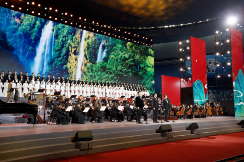 随后第二乐章《春的欢娱》、第三篇章《春的颂歌》、第四篇章《春的胡想》顺次上演。一系列典范曲目曲击,交响合唱《春风十万里》,管弦乐《第一交响序曲》,交响乐《红色娘子军》选曲《万泉河水清又清》,钢琴协奏曲《黄河》让人热血磅礴。