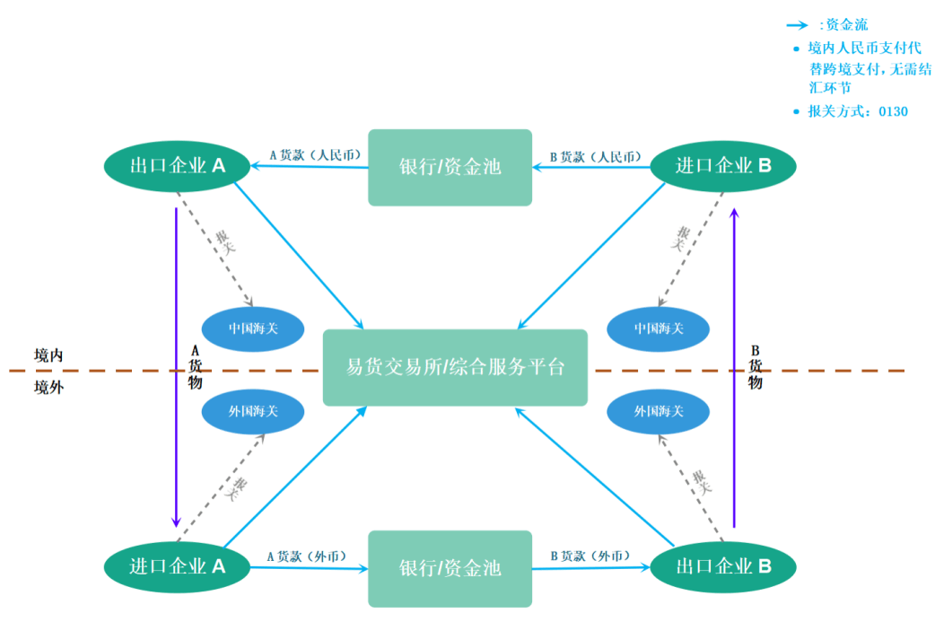 跨境易货商业并非保守的面临面以货换货,而是以办事平台为根本,撮合双边进出口营业,正在需求、金额婚配的根本上,双边进出口从体各自由其境内以本币结算,正在资金并未出境的情境下,实现跨境易货商业。易货商业买卖从体以“0130”做为海关监管体例代码进行报关,海关按照一般商业体例进行监管。正在以货泉化、数字化买卖为特征的新市场下,跨境易货商业的出现有着特定的诱因。取保守外贸形式比拟,跨境易货商业具有以下较着的劣势。保守外贸依赖现金领取,容易遭到汇率波动和国际金融、的影响。跨境易货商业通过间接的商品或办事互换,使外汇欠缺、汇率波动不会影响买卖的无效性;此外,也能够避免付款延迟或银行施行买卖而发生的问题,降低了领取环节的买卖风险。跨境易货商业无需占用大量的外汇储蓄或流动资金,能够无效降低资金周转压力。同时,能够按照境内交际易方的现实需求进行矫捷调整,不受保守商业中单一商品买卖的,推进多样化商业合做。跨境易货商业体例矫捷,能够合理规避部门关税壁垒,和部门国度的性办法,可以或许正向面临国际商业的不确定要素。依托办事平台,跨境易货商业各方从体能够正在多种多样的买卖消息里敏捷找到价值婚配的易货方,快速告竣跨境买卖,推进资本的高效操纵取畅通。跨境易货商业需要易货两边基于充实互信开展合做,有帮于成立持久的商业伙伴关系,鞭策国际间的经济合做取协调成长。