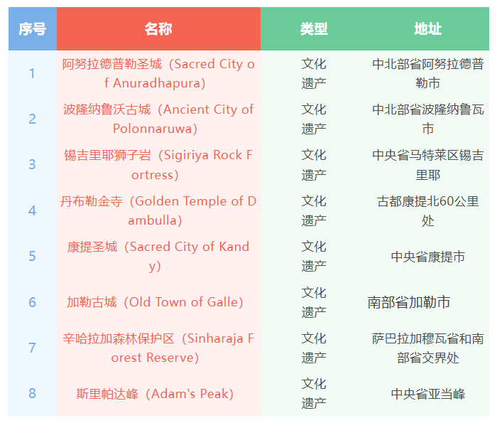 阿努拉德普勒取波隆纳鲁瓦王朝:阿努拉德普勒(Anuradhapura)和波隆纳鲁瓦(Polonnaruwa)是斯里兰卡古代两个主要的王朝,留下了大量释教遗址和文化遗产。