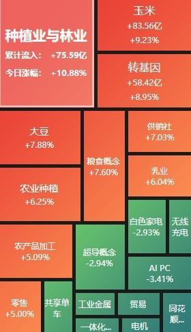 09!26 农业板块延续涨势,万向德农、新赛股份涨停,大禹节水300021)、川宁生物301301)、北大荒、农发种业600313)等跟涨。